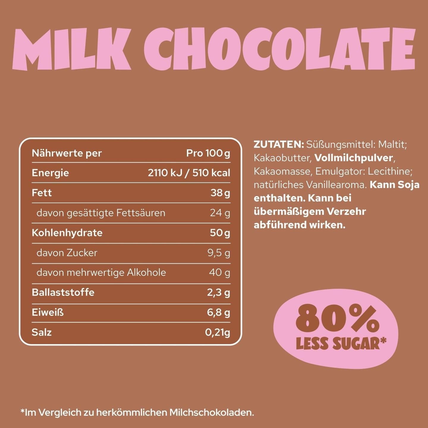 Gesüsst mit Maltit und ohne zugesetzten Kristallzucker – so bleiben die Chunks angenehm süss, ohne zu schwer zu wirken. Der verbleibende Zucker stammt natürlich aus den verwendeten Rohstoffen. Ideal, wenn du auf eine zuckerbewusste Ernährung achtest.