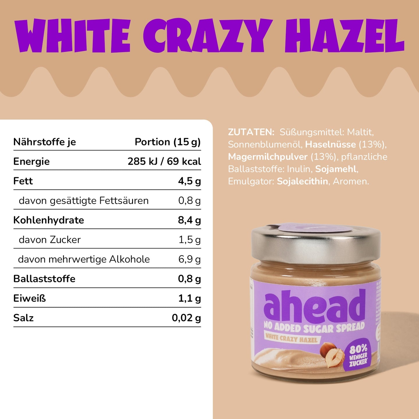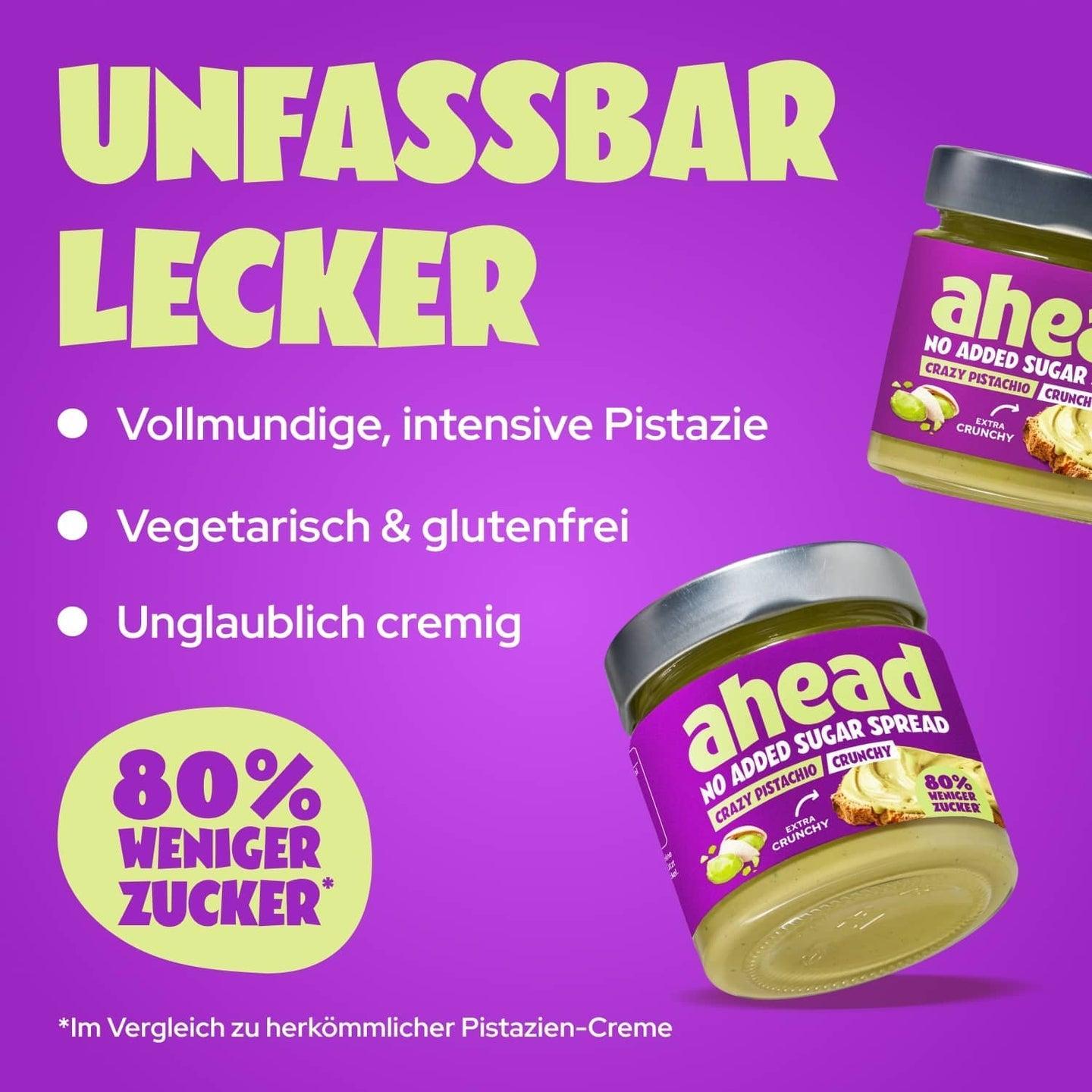 Bereit für deinen neuen Lieblingsaufstrich? Die Ahead Crazy Nuss Creme vereint intensiven Nuss-Geschmack mit deiner Wunsch-Textur – samtig-cremig oder mit knackigen Stückchen. Ob Crazy Pistachio, Crazy Hazel, White Crazy Hazel oder die winterlich-würzige Crazy Spekulatius: Hier findet jede und jeder die perfekte Sorte für Frühstück, Snack oder Dessert.