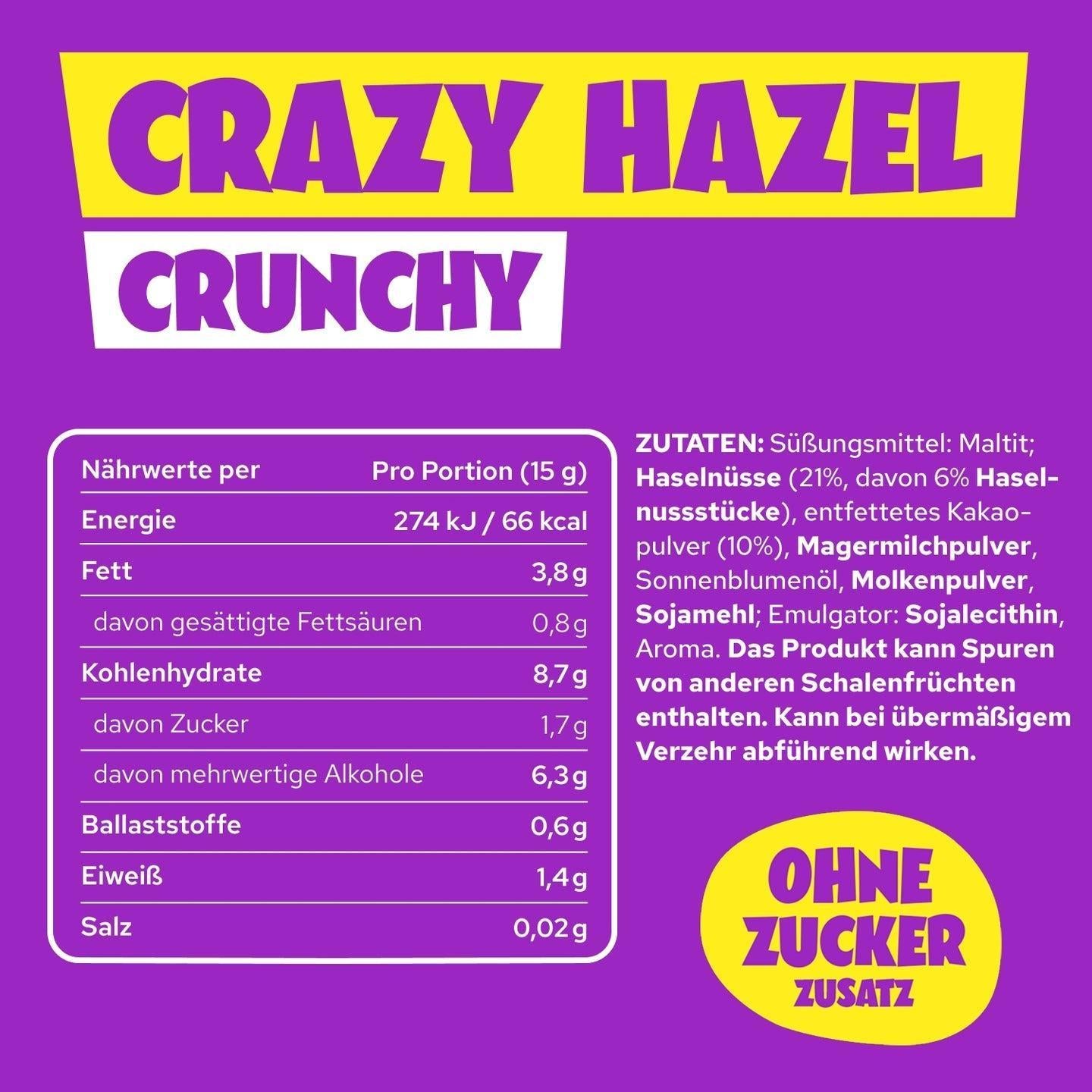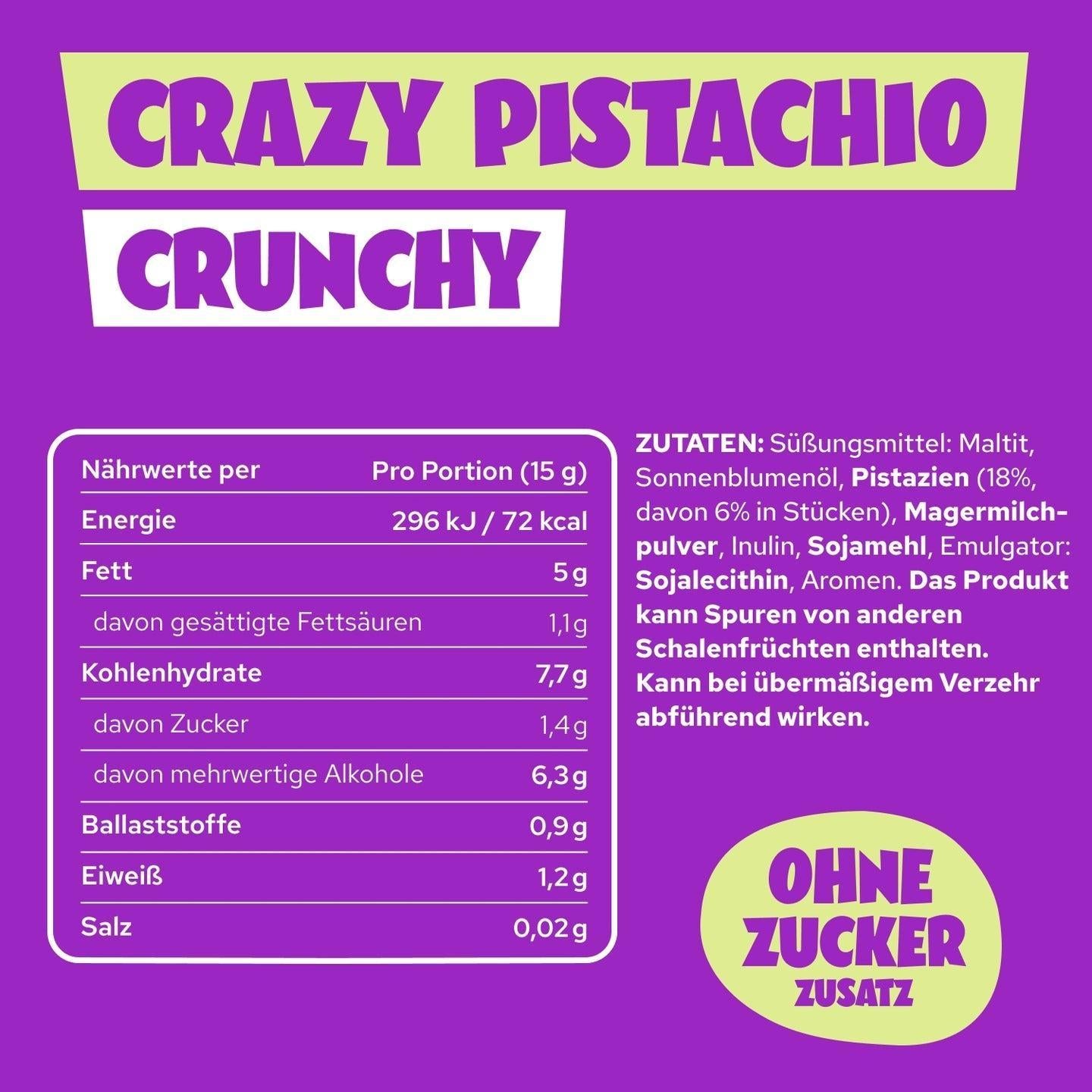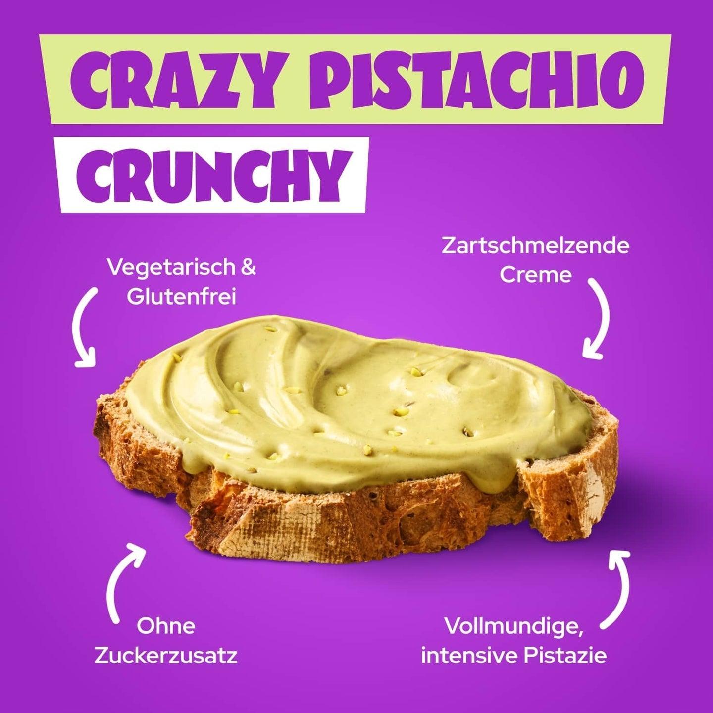 Zur Auswahl stehen u. a. Crazy Pistachio, Crazy Hazel, White Crazy Hazel sowie Crazy Spekulatius – teilweise sowohl cremig als auch crunchy.