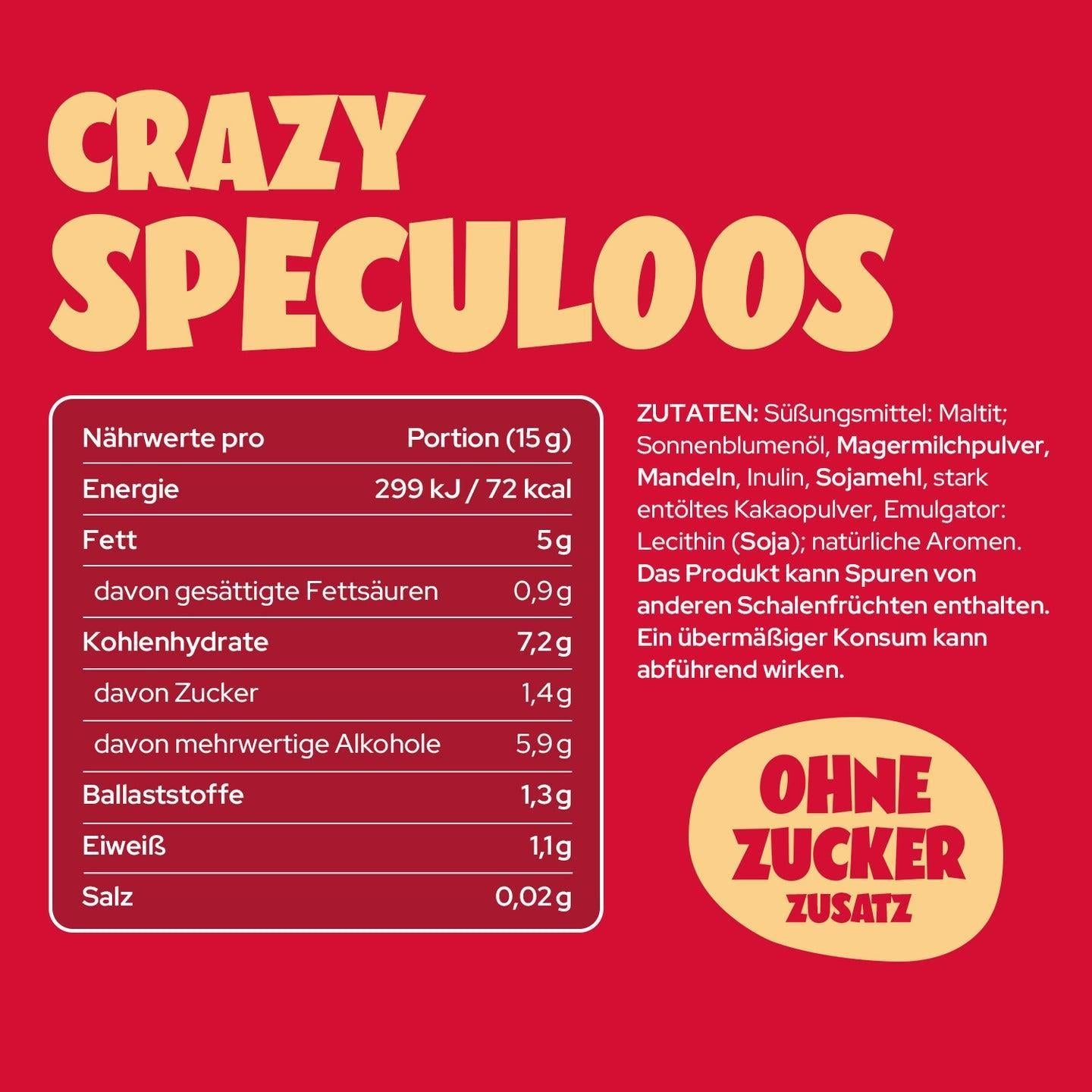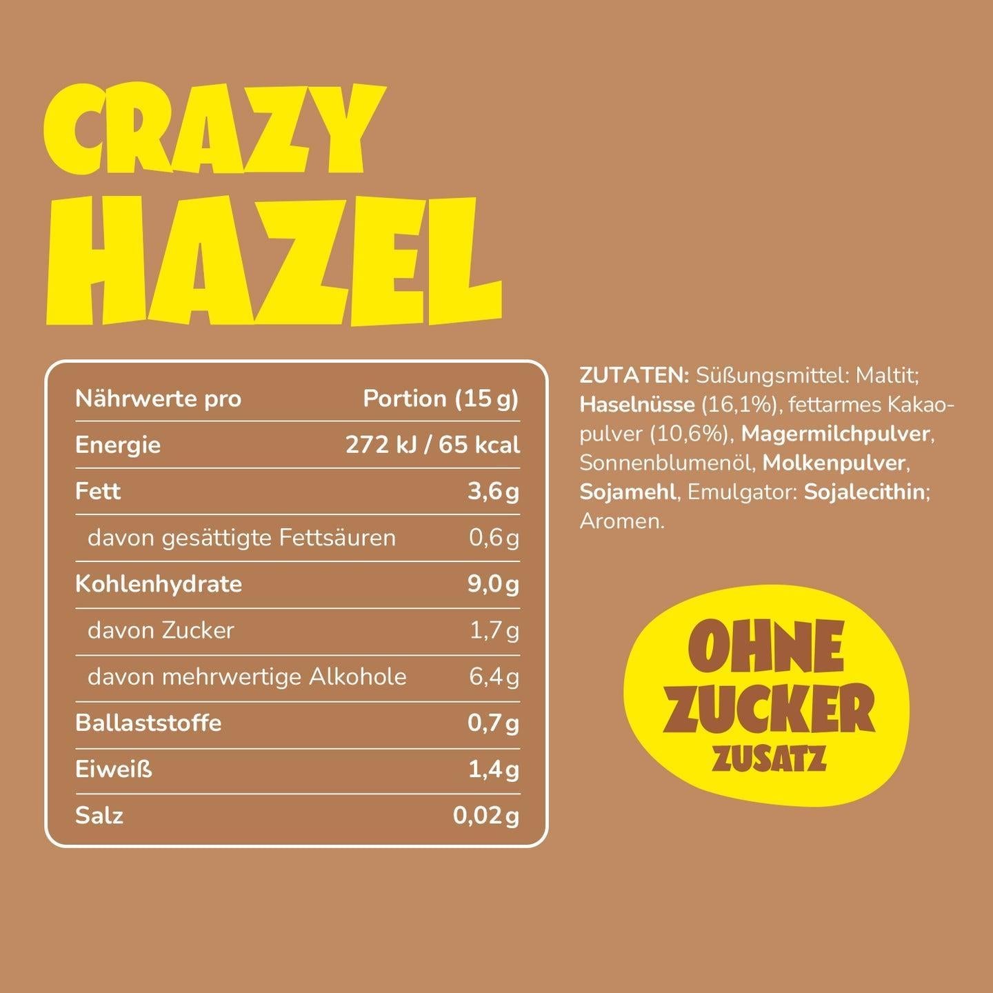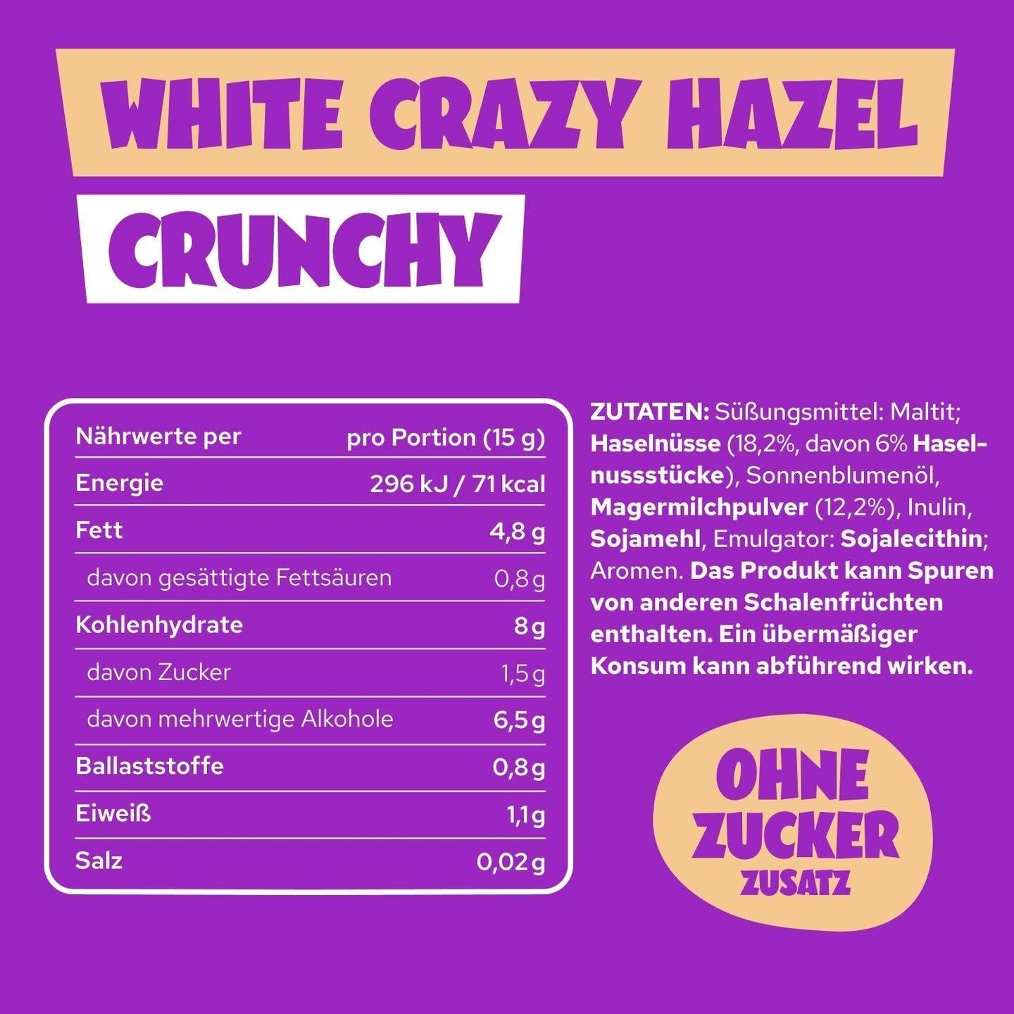 Crazy Pistachio punktet mit dem unverwechselbaren Pistazien-Aroma – wahlweise als cremige Variante oder extra crunchy. Crazy Hazel setzt auf den klassisch-nussigen Haselnuss-Genuss; White Crazy Hazel bringt eine helle, besonders zarte Interpretation mit, die es ebenfalls als crunchy gibt. Und wenn’s würzig sein darf, sorgt Crazy Spekulatius für saisonales Keks-Feeling – nicht nur im Winter ein Highlight.
