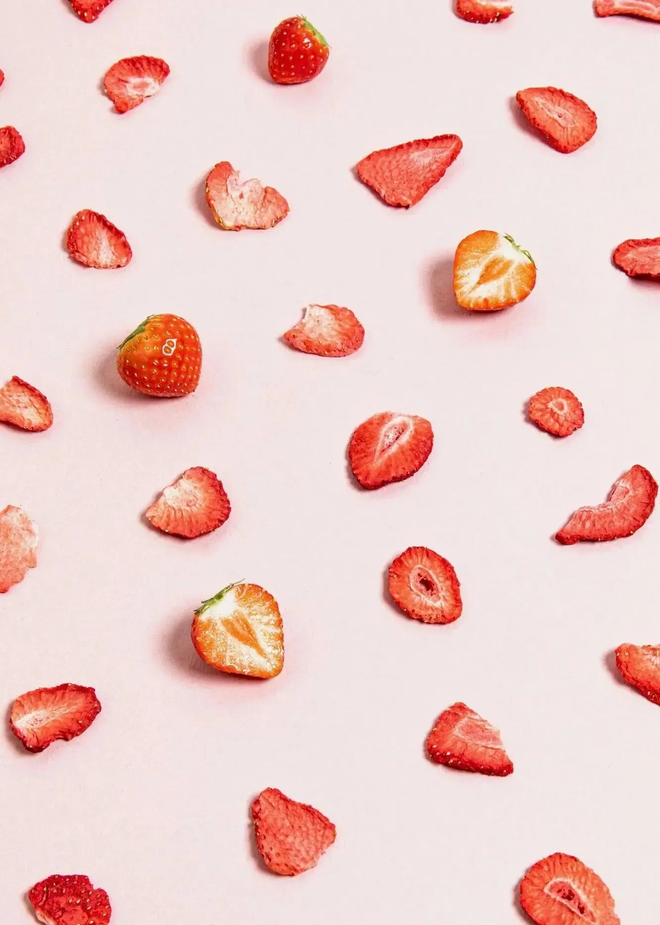 Enjoy the freeze-dried strawberry slices straight as a crunchy snack, or sprinkle over muesli, porridge and bowls. Refine yogurt, quark and desserts, bake them into cookies, cakes and muffins, or blend into smoothies. For a fruity drink, steep 3–4 slices in hot water – creates a light fruit tea. For extra crunch, crumble lightly or grind finely to use as natural strawberry powder.