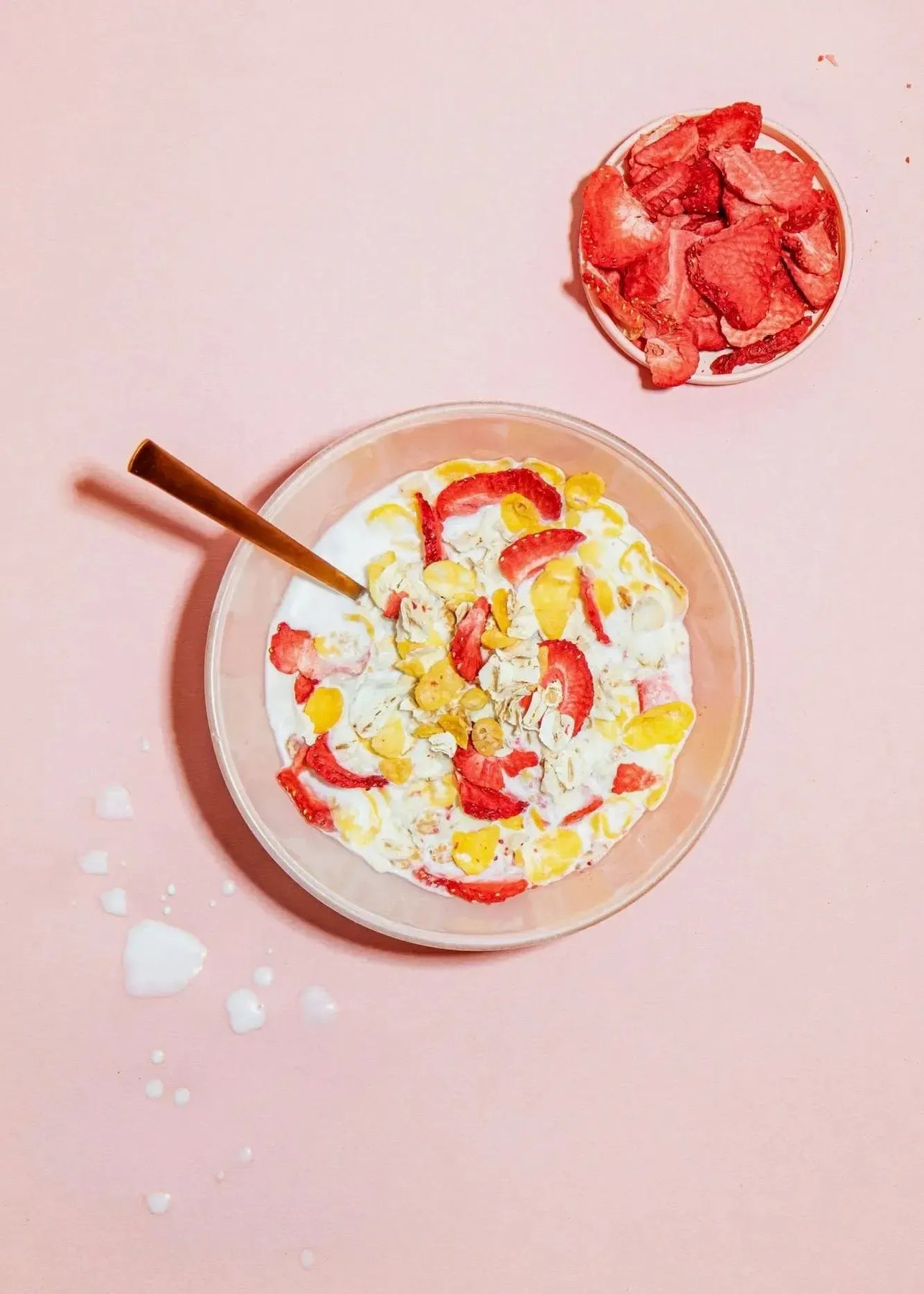 Turn the strawberry slices into a quick winter comfort dessert: gently heat some oat or regular milk with a pinch of cinnamon and vanilla, then stir in a few spoonfuls of fine oats or semolina and let it thicken briefly. Just before serving, sprinkle a generous amount of the freeze-dried strawberry slices on top – some will stay crunchy, others will absorb a little warmth and soften slightly. In just a few minutes you have a creamy, warming dessert or snack with lovely strawberry crunch and intense flavour, without any added sugar. For an extra treat, lightly crumble a few slices beforehand and use them as “strawberry crumble” on top.