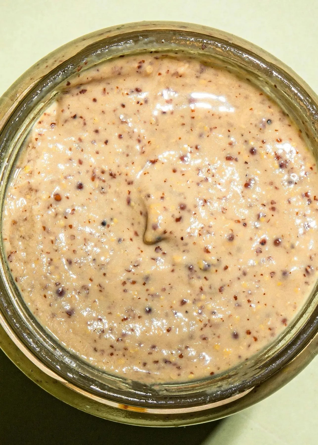 The coarse, creamy-pasty consistency delivers a pleasant bite and an authentic mouthfeel. Its light beige colour and visibly grainy structure reveal honest mustard flavour—pleasantly medium-hot and with no added sugar (contains naturally occurring sugars).