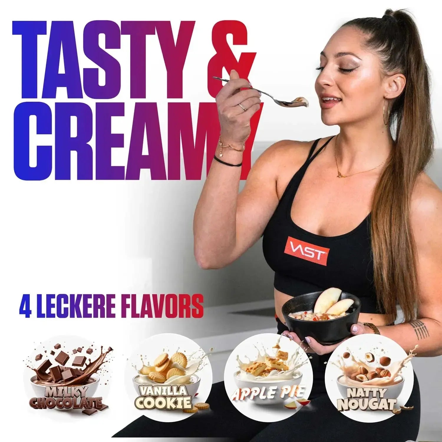 VAST Rice + Whey est ton repas protéiné sans prise de tête : farine de riz instantanée et whey de haute qualité — onctueux, doux et prêt en quelques secondes. Il suffit de mélanger et de déguster — le matin, autour de l’entraînement ou en snack malin.