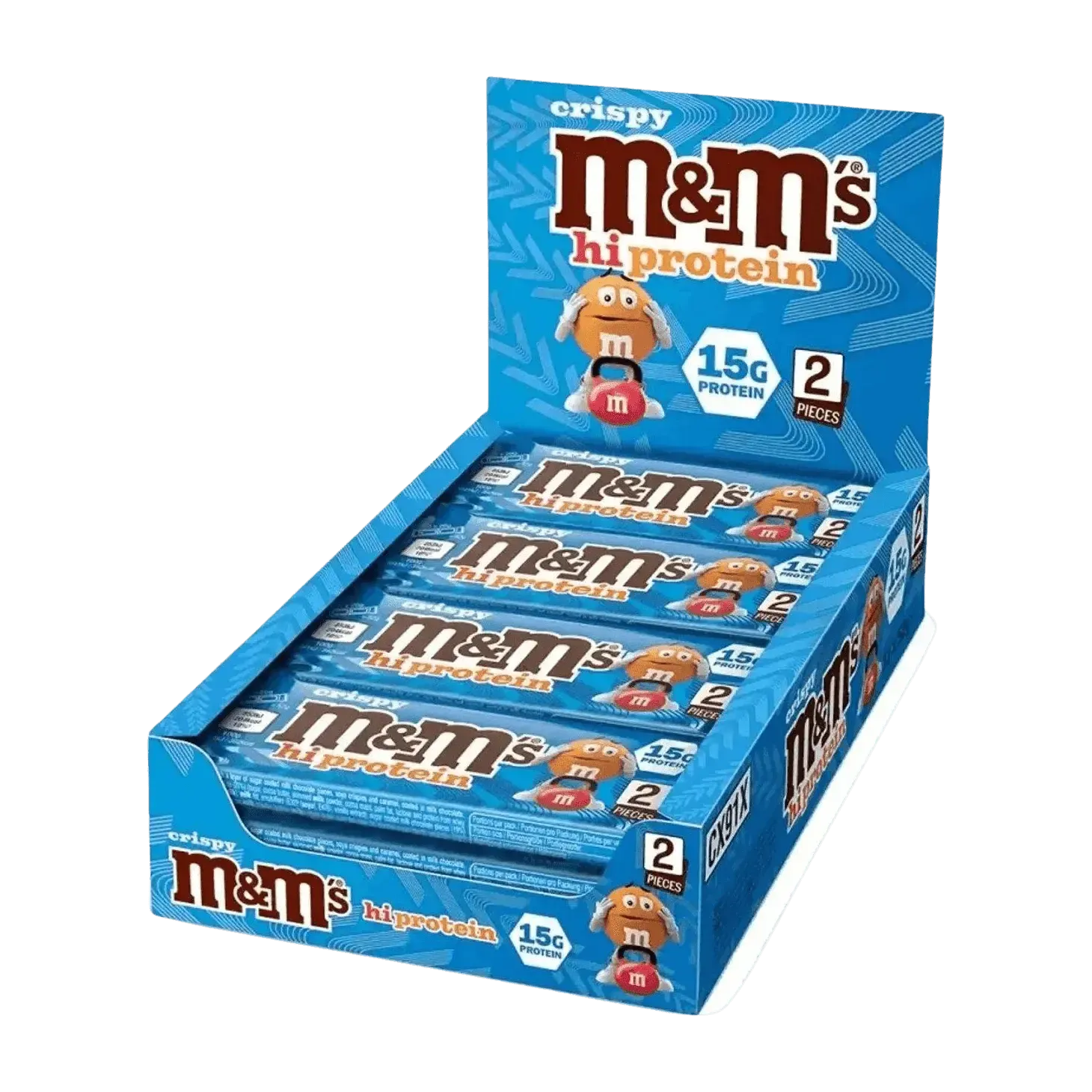 Plaisir M&M's croustillant en barre protéinée : chocolat au lait crémeux, crispies croquants et 15 g de protéines—parfait pour l'entraînement, la fac et les déplacements.