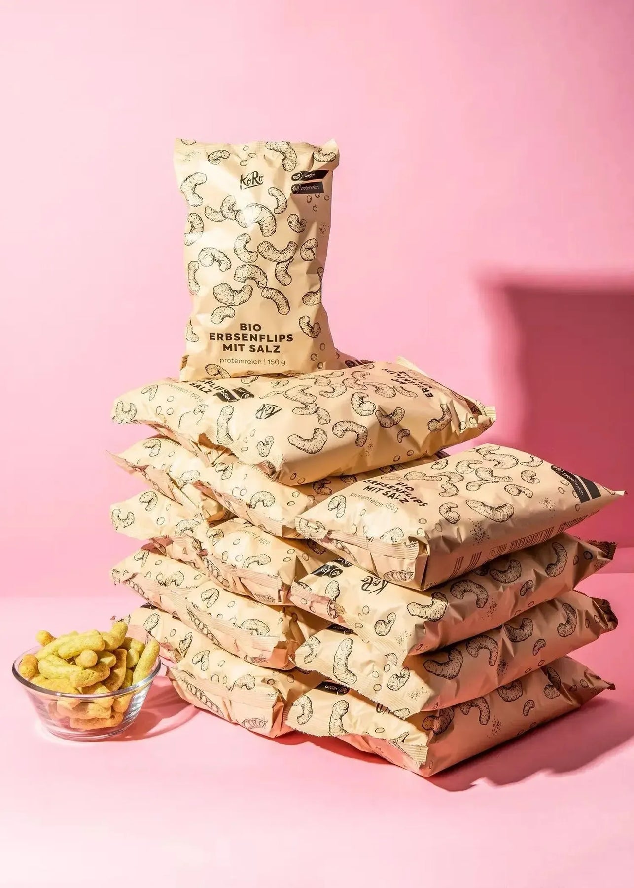 Bio Erbsenflips mit Meersalz: knusprig‑leicht, vegan und angenehm erbsig – der smarte Chips‑Ersatz für bewusste Snackmomente.