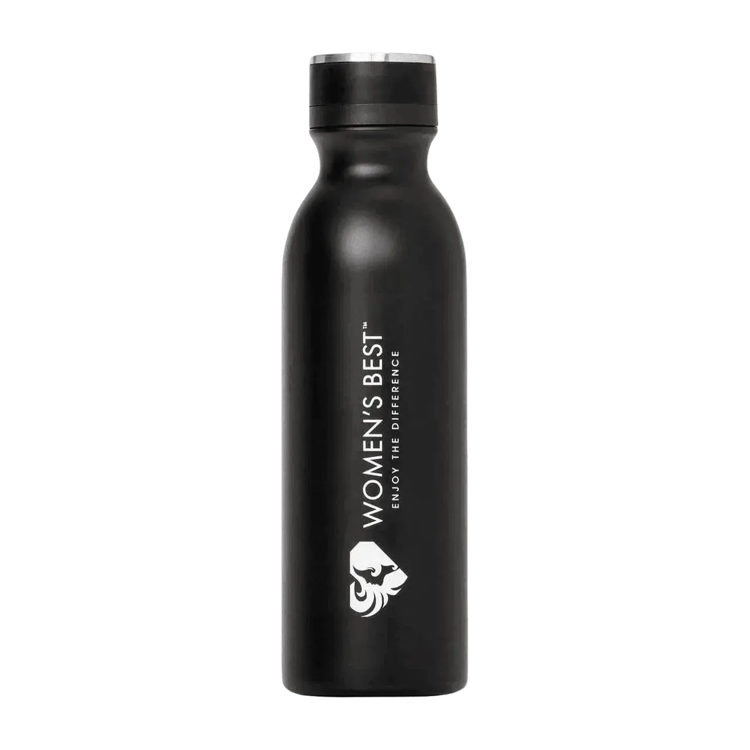 Stylische 600-ml-Isolierflasche für Training, Büro und unterwegs – hält Getränke zuverlässig heiss oder erfrischend kalt. Mattes Schwarz mit Women's Best Logo: robust, geschmacksneutral und alltagstauglich.